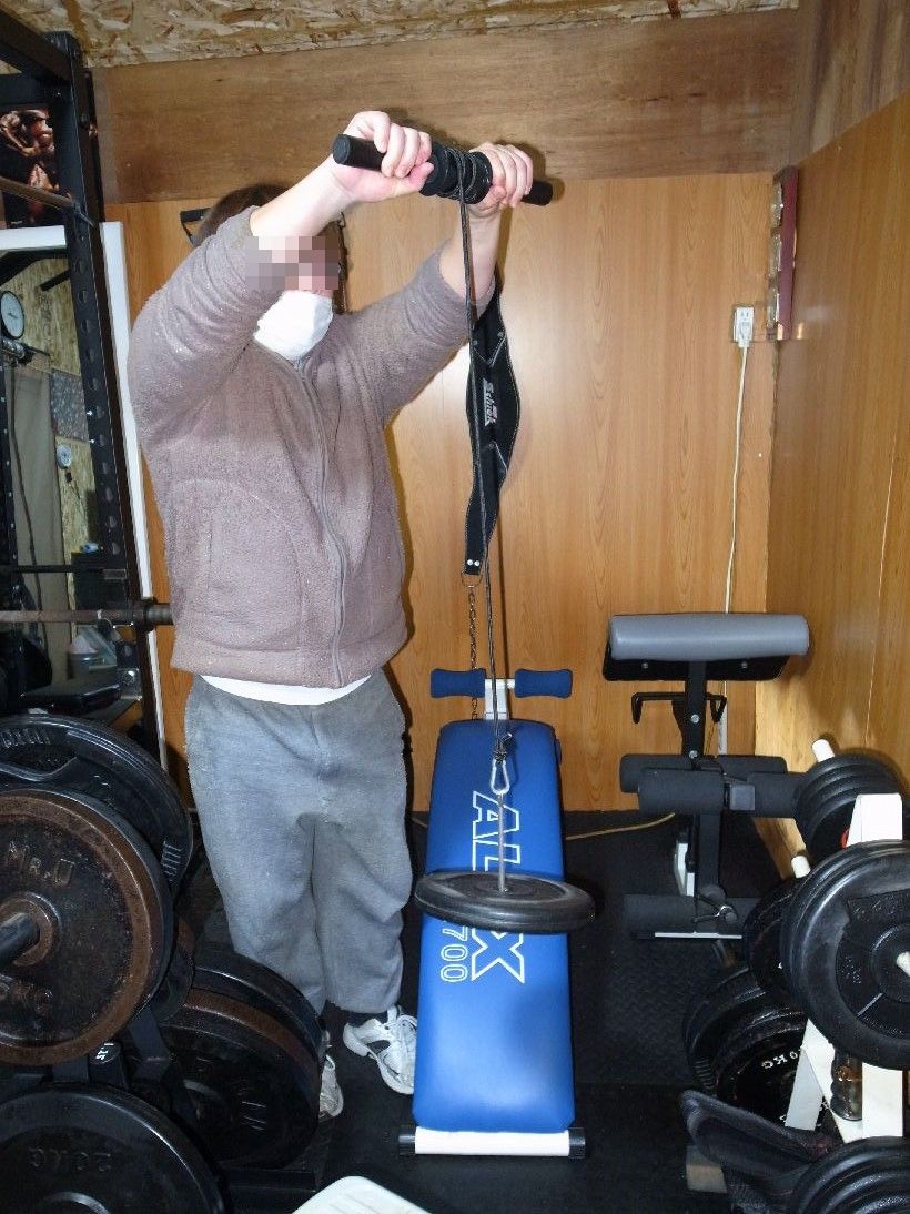 iさんはベンチ台にゴムをかまして高さ調整をしていました