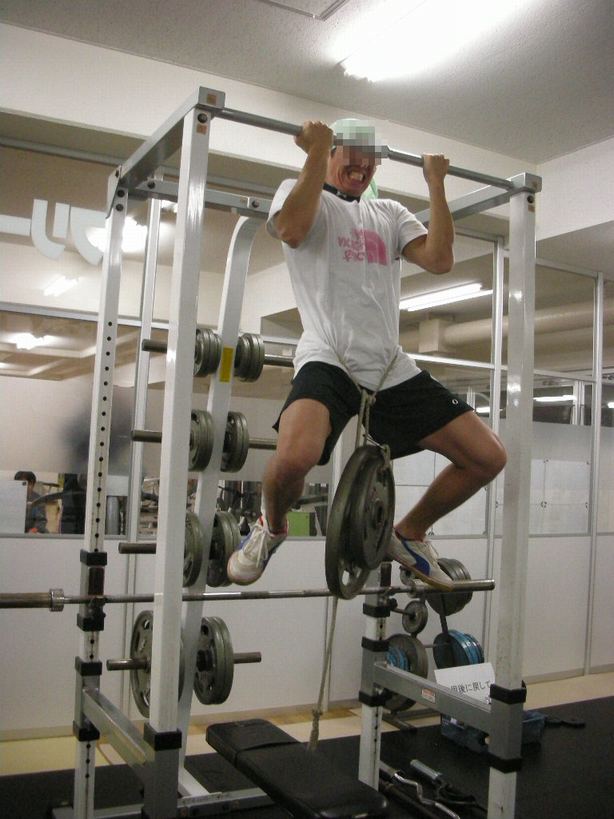 この前は20㌔をぶら下げて両手で3回だったのが