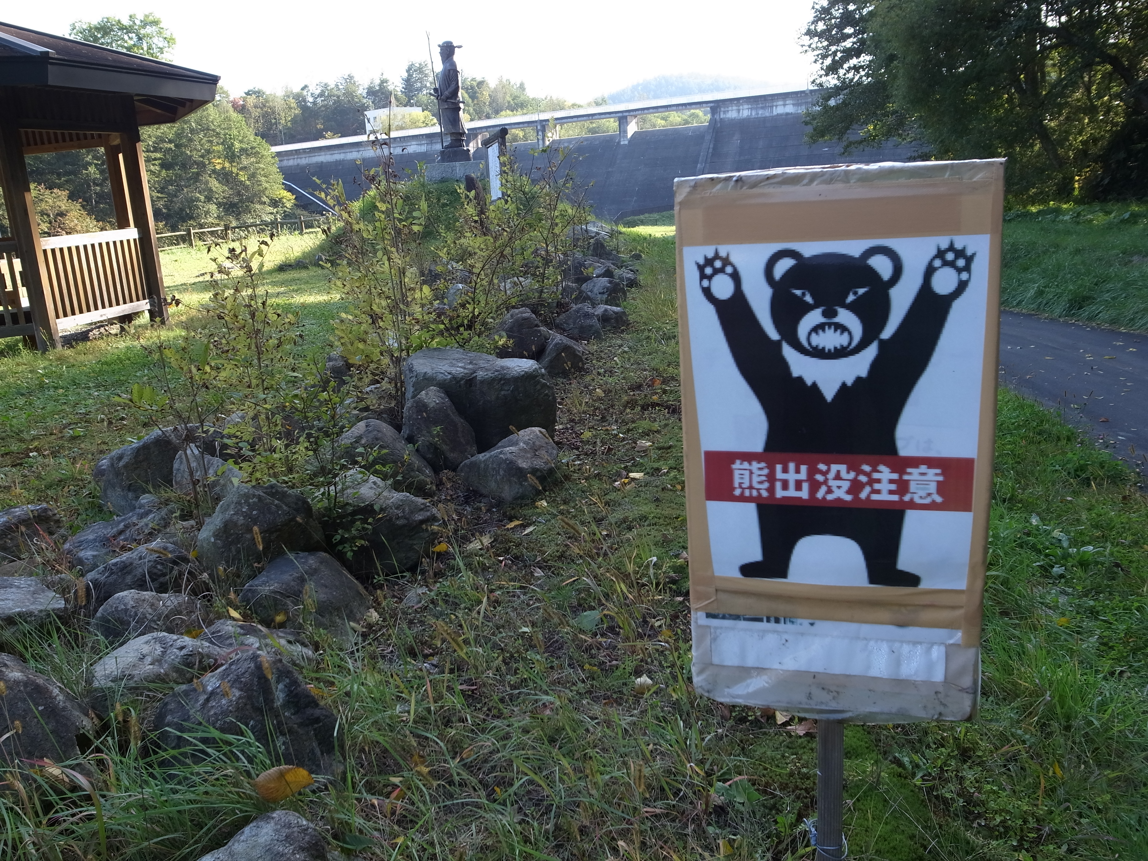 http://www12.plala.or.jp/k-hirao/kankou/41_13.html 帰省していた二女をバス乗り場まで送ってから 犬ちゃんたちと中札内の一本山展望タワーに 行ってみることにした 約30分で現地に着くと看板が見えた やはりクマかぁ! 仕方がなので、途中で写真を撮り すぐ近くの西札内防災ダム公園へ ぎゃ。。。 ここもクマ@@; 危険なので犬ちゃん達は車から出さずにパチリ 帰路、中札内道の駅の第二駐車場でやっと散歩 ごまっちゃ♀も嬉しそう エマ♀は、いつも口を開けている(笑) 二時間弱で無事帰宅 |