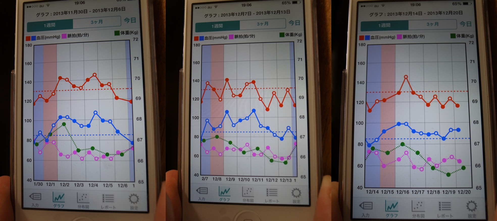 血圧と体重の推移(三か月スパン)