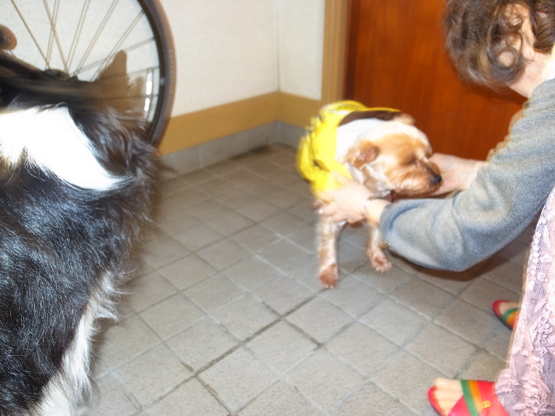 母に服を着せてもらうごまっちゃ