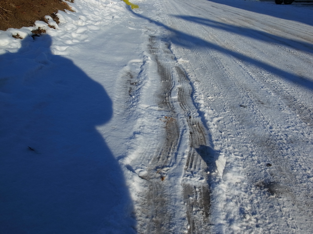氷の上にうっすら積もった雪