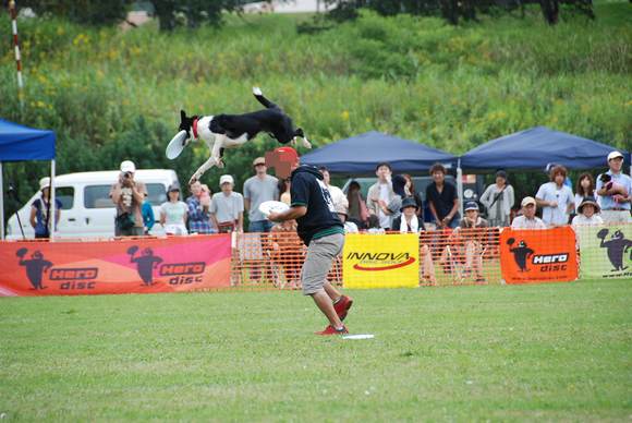 犬がキャッチしたり、飼い主の背中を跳び