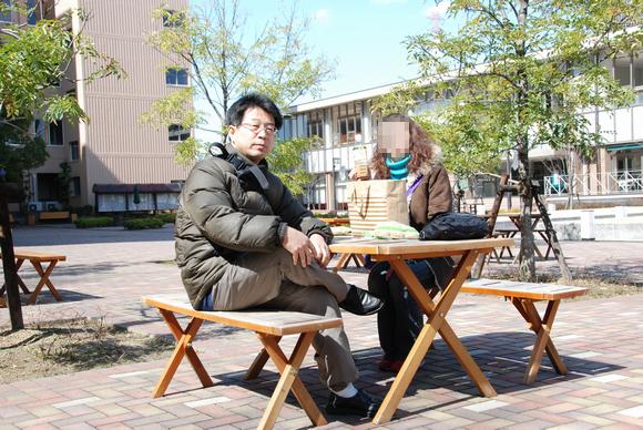 先輩が外の方が暖かいというので、屋外でまた食べた